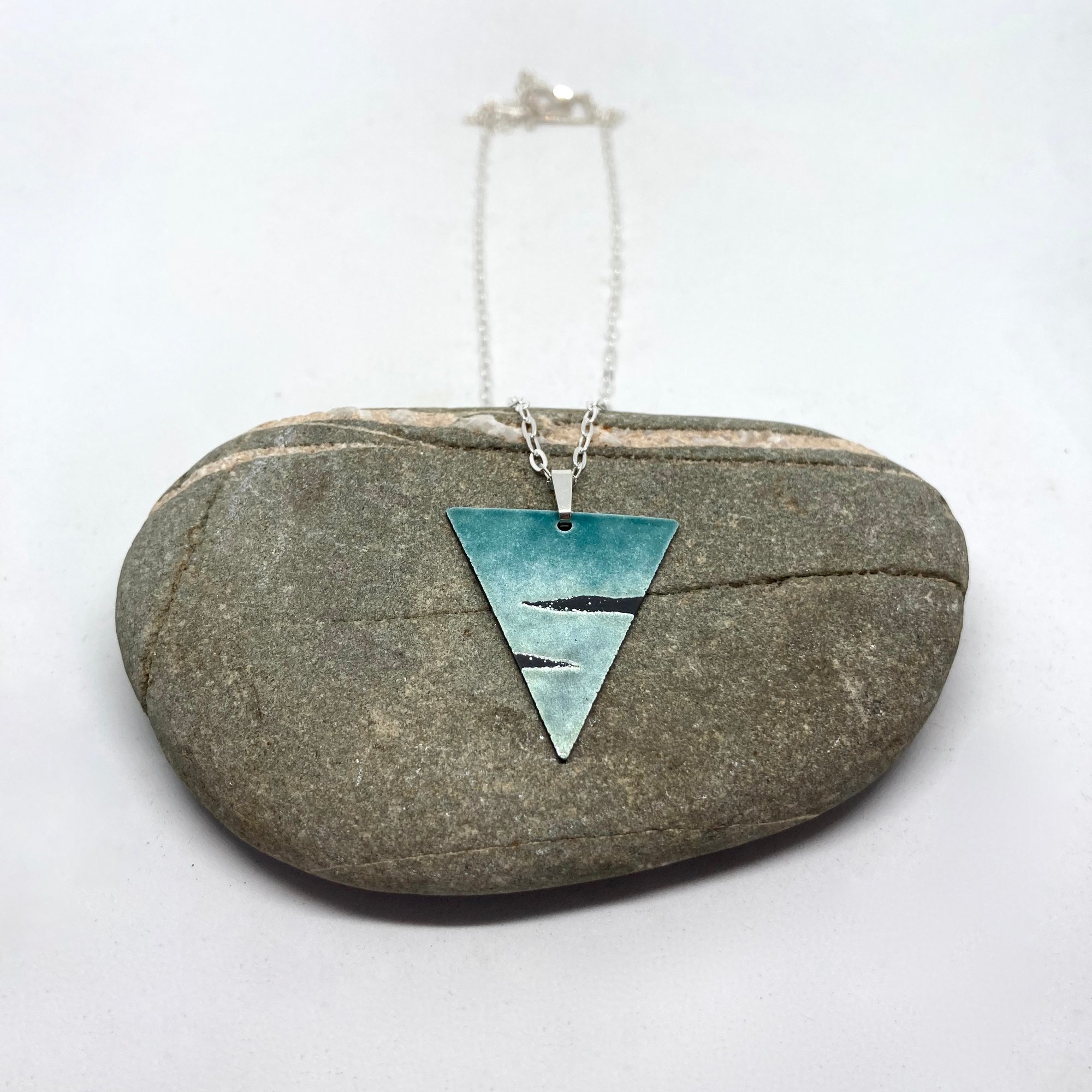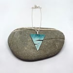 Enamelled silver triangle pendant enamelled in sea blues on a 18-20 inch silver chain.