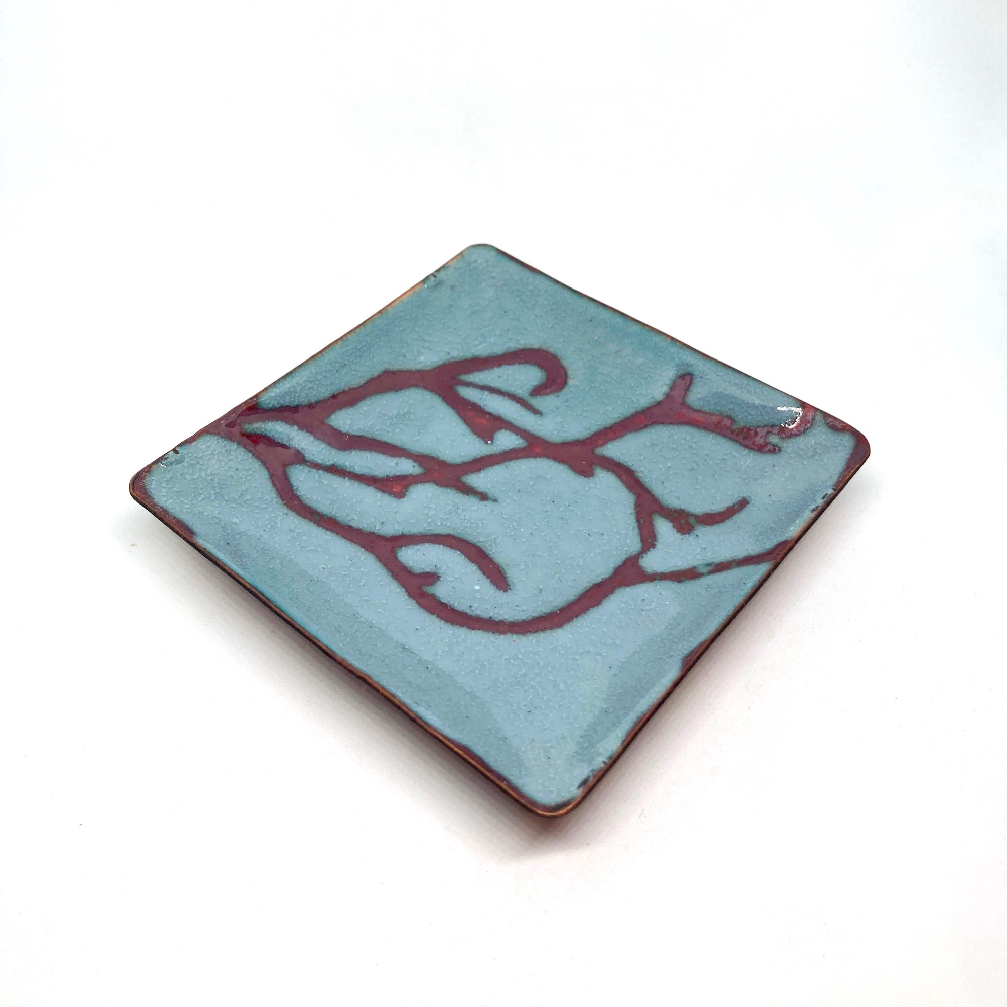 Enamelled Copper Shallow Square Dish.