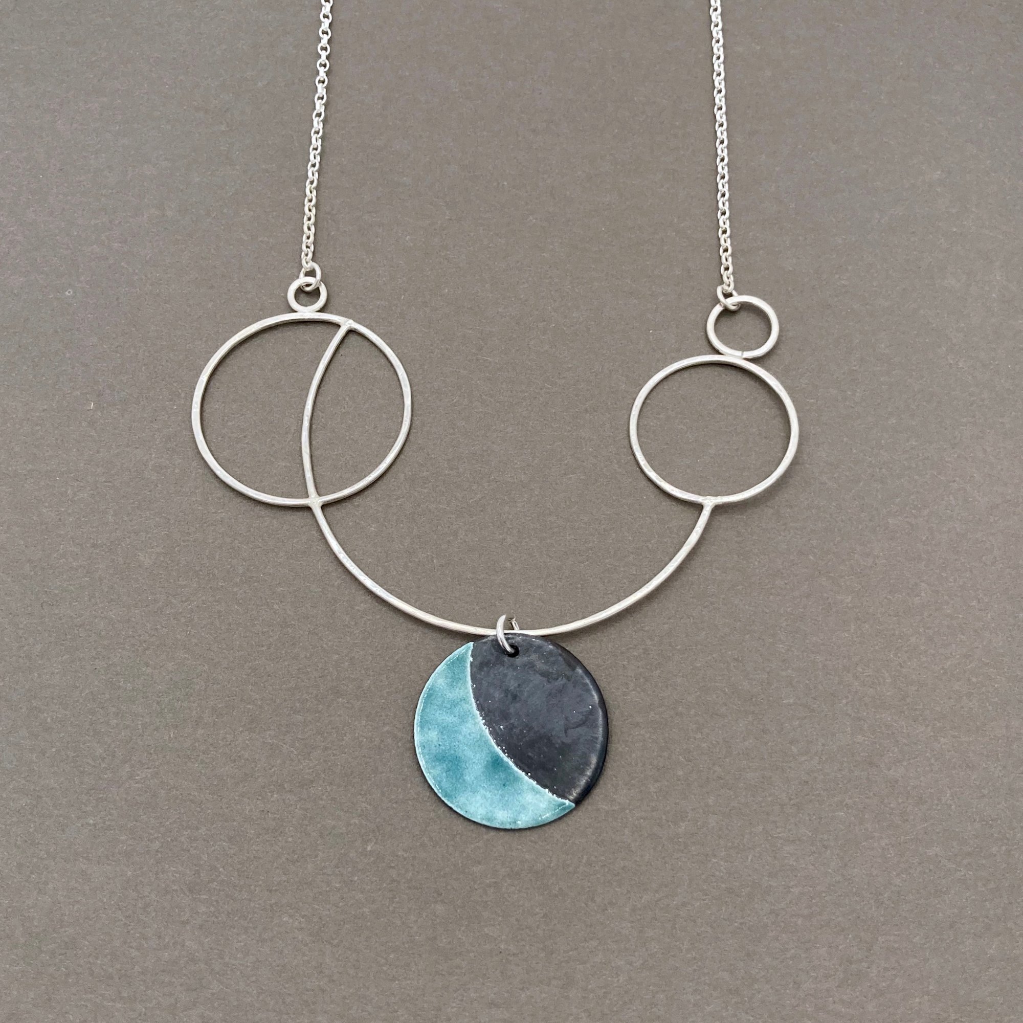 Oxidised silver and enamel moon pendant on Sterling Silver Necklace.