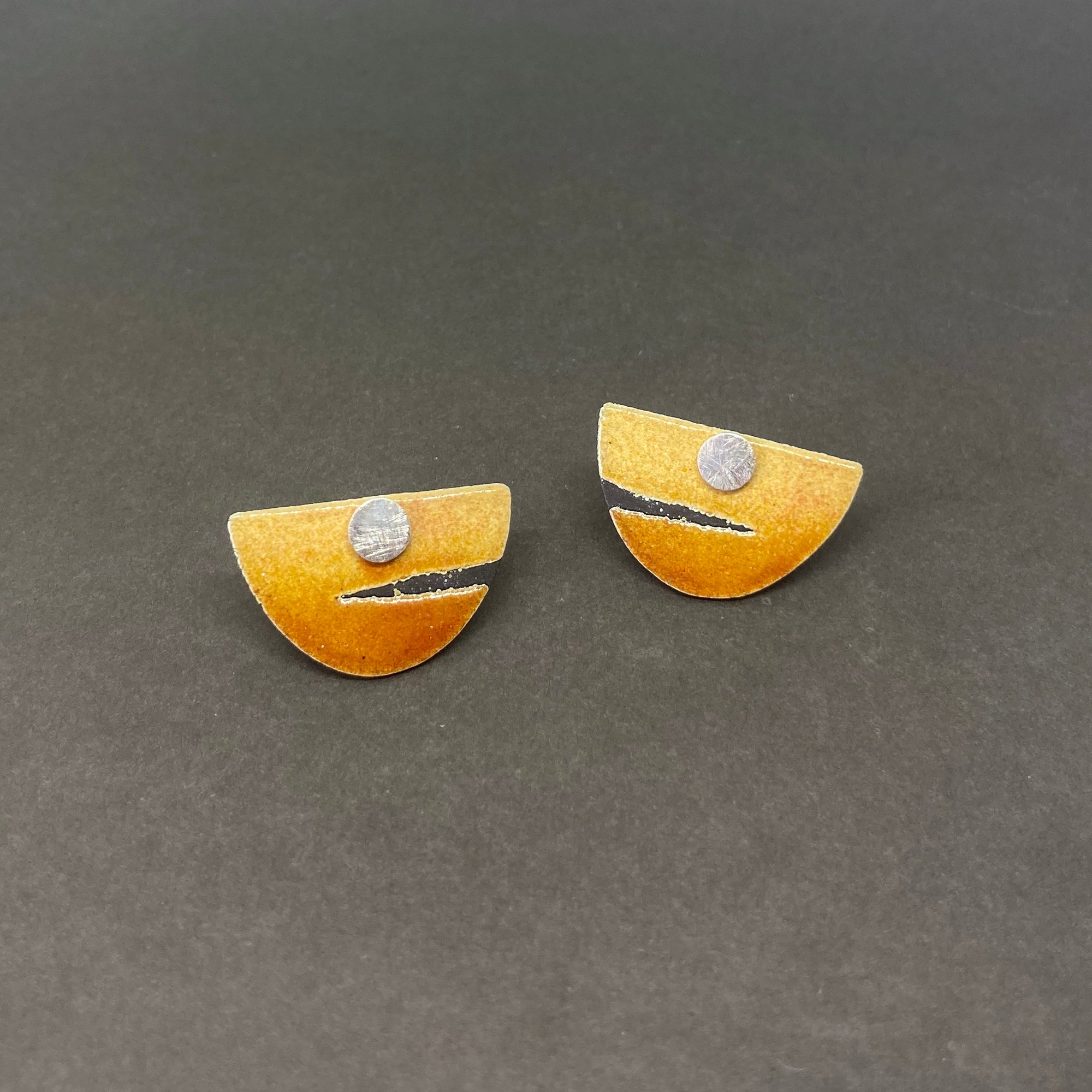 Enamelled Silver Semi-ovals with Silver Sun Studs.